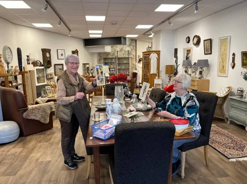 Regelmatig een bezoekje brengen aan de Boeldagwinkel is de moeite waard, verzekerde Doortje. Want het aanbod wordt regelmatig aangevuld vanuit de meubelhal van de Boeldagwinkel en de Kringloopwinkel aan Burgemeester van Oordtstraat.