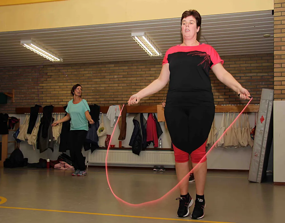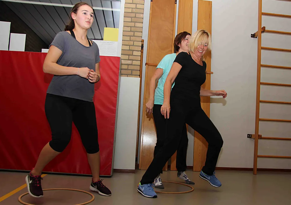Concessies doet lesgever Renate Goossensen nietaan de aard van de oefeningen. Die zijn pittig zonder - wat tegenwoordig de trend is - te overdrijven. "Achttien-plussers kunnen bij mij terecht voor een uurtje ongedwongen sporten zonder enig gedrill. De sporters moeten het immers zo leuk vinden dat ze de week erop graag terugkomen."