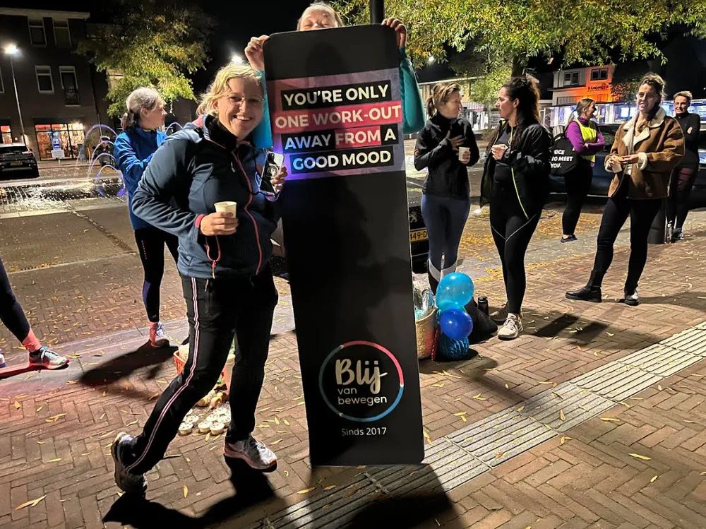 Weer of geen weer, bij Blij van Bewegen wordt altijd buiten gesport. Heerlijk vinden de dames dit. "Is het echt slecht weer dan heeft Jonna altijd een oplossing, zoals bijvoorbeeld trainen onder een luifel. Nu het 's avonds donkerder is geworden trainen we op maandagavond in het goed verlichte centrum van Ermelo.