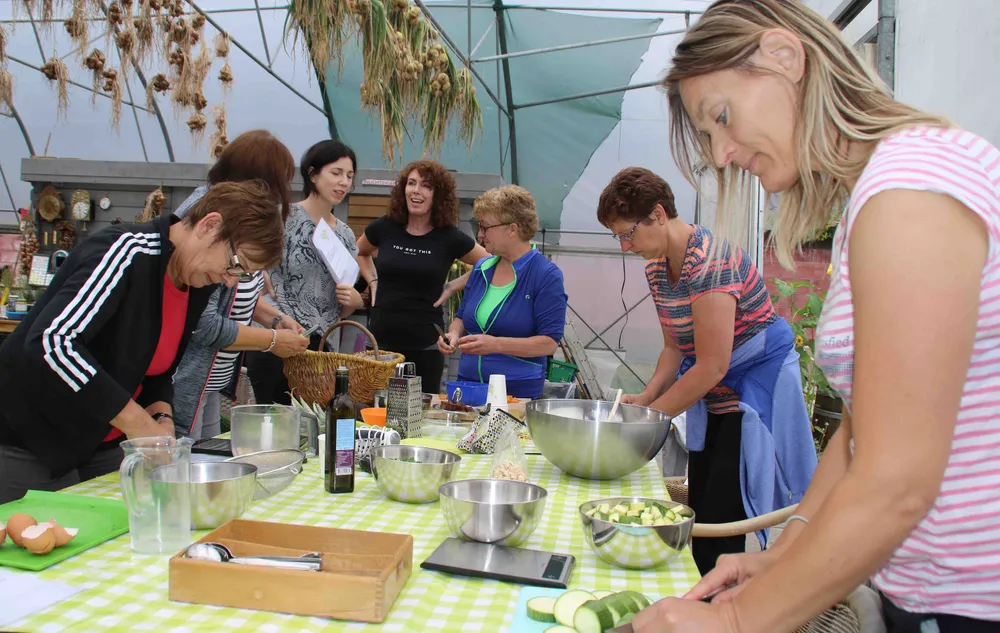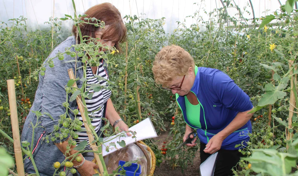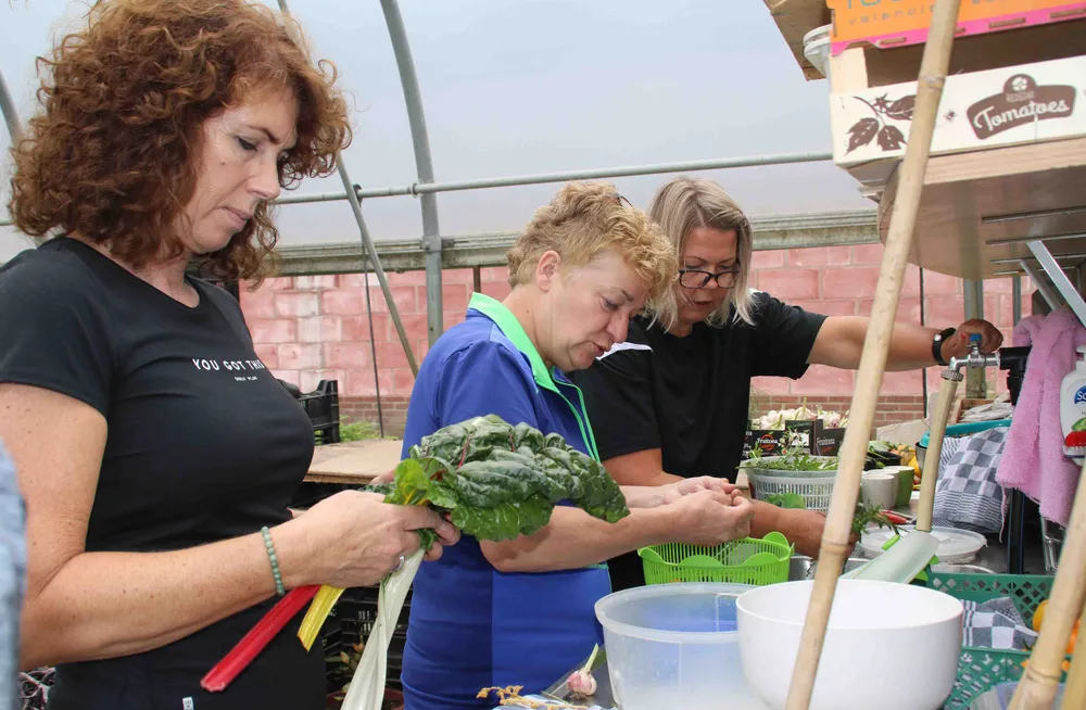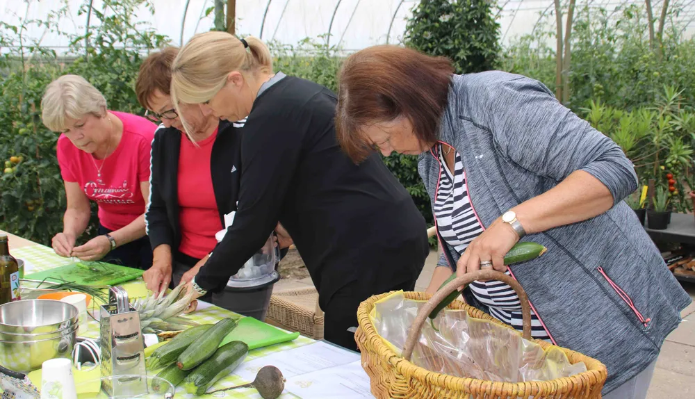 Het gros van de dames kende de Pluktuin niet. Hun mond viel bijna open van verbazing over dit unieke stukje 'paradijs' aan de Telgterweg. De groenten tot kruiden die er worden geteeld zijn 100 procent biologisch vertelde Tineke. Met advies van Krista gingen de dames vervolgens in de Pluktuin zelf hun ingrediënten plukken voor de gezonde lunch, die onder meer bestond uit soep, een zomerse salade met bloemen, smoothie tot kruiden-omelet.