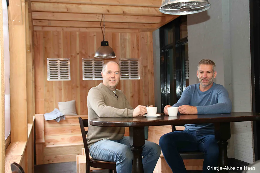 Daarnaast is aan de zijde van Zeeweg ruim 30 vierkante meter bijgebouwd door Van Panhuis Bouw. Het gaat om een uitbouw die de allure heeft gekregen van een verwarmde knusse skihut. Heel gezellig bijvoorbeeld maakt de lambrisering van stoer hout de ruimte, waarover gasten door de terraszeilen uitkijken over de Zeeweg. Lubbersen: "Als het mooi weer is kunnen we deze zeilen oprollen, en de ruimte zomers als terras gebruiken." Net zo knus oogt het houten plafond waarvan de balken zichtbaar zijn, als ook twee tegenovergestelde wanden die betimmerd zijn met hout. Absolute blikvanger is de riante loungehoek van blank hout die is getimmerd door Albert van der Horst. "Het is prachtig geworden", blikken Lubbersen en Dennis Offenberg (gitarist en contrabassist van The Razzles) tevreden rond onder het genot van een bakje koffie. Een schuifpui geeft daarnaast toegang tot de dartruimte, de bar en het Eetcafé.