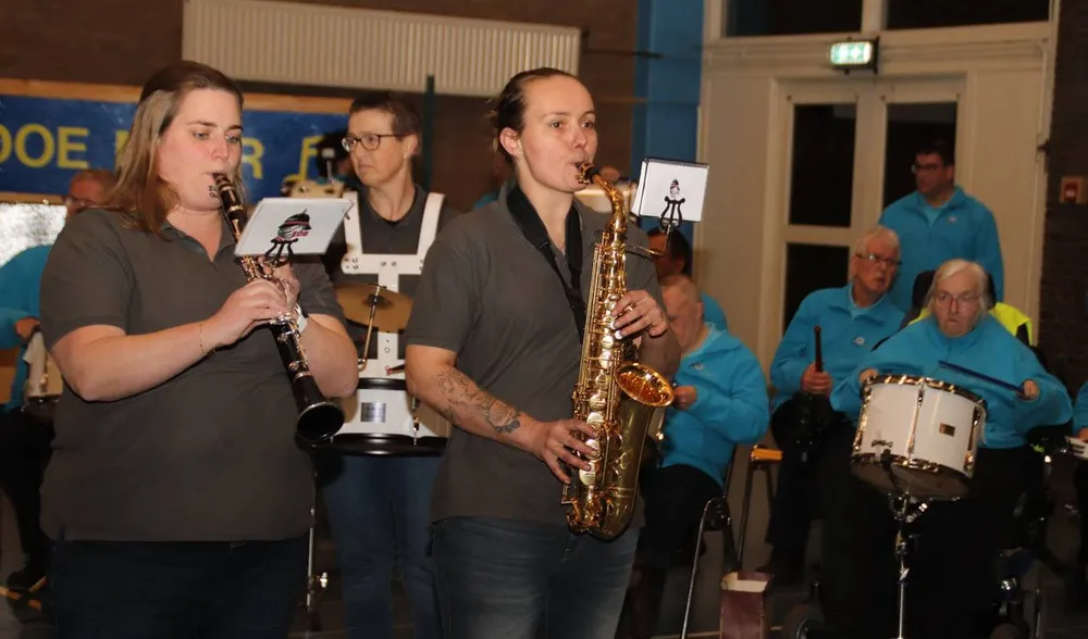 Showband Doe Maar, met leden met een verstandelijke beperking, repeteert elke donderdag in Het Keerpunt. Een keer per maand geven ze een optreden samen met een gastorkest of artiest. Deze keer was het de beurt aan het entertainment orkest EDG. Het was dan wel niet de eerste keer dat ze samen optraden, maar al wel heel lang geleden, weet Mirjam Mantel die de zakelijk leiding heeft overgedragen aan haar dochter Juliette.