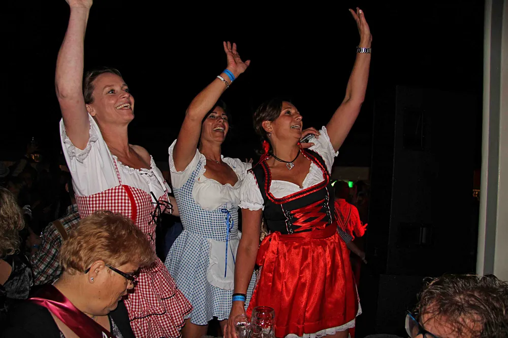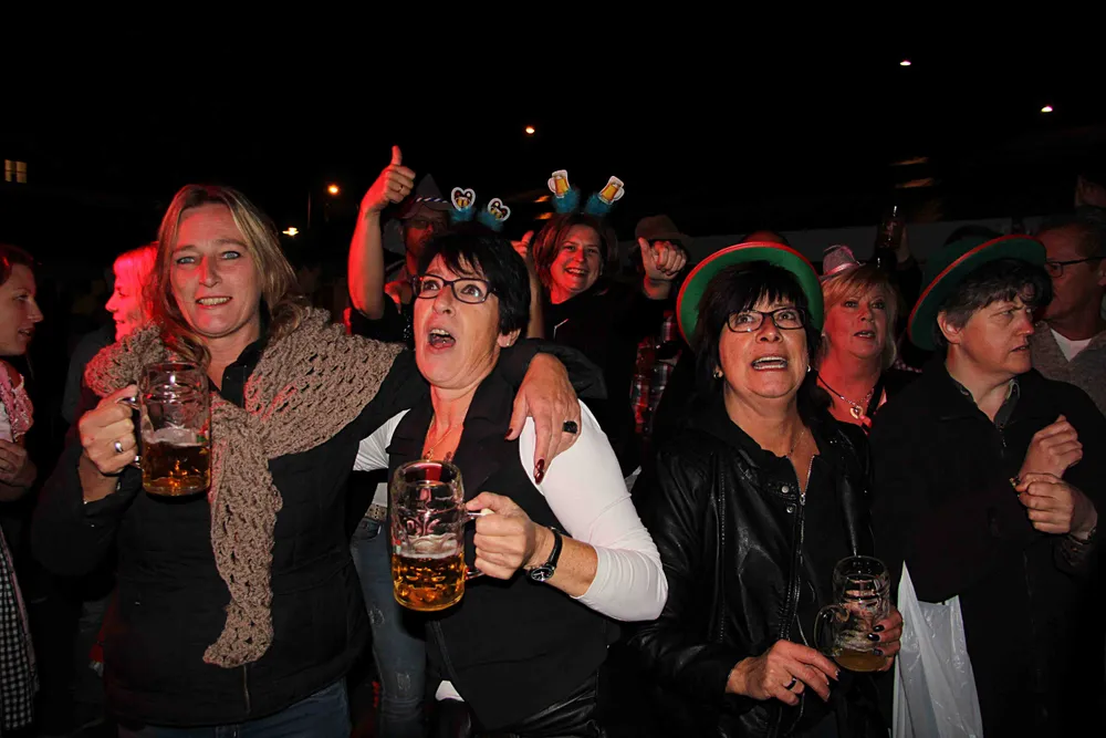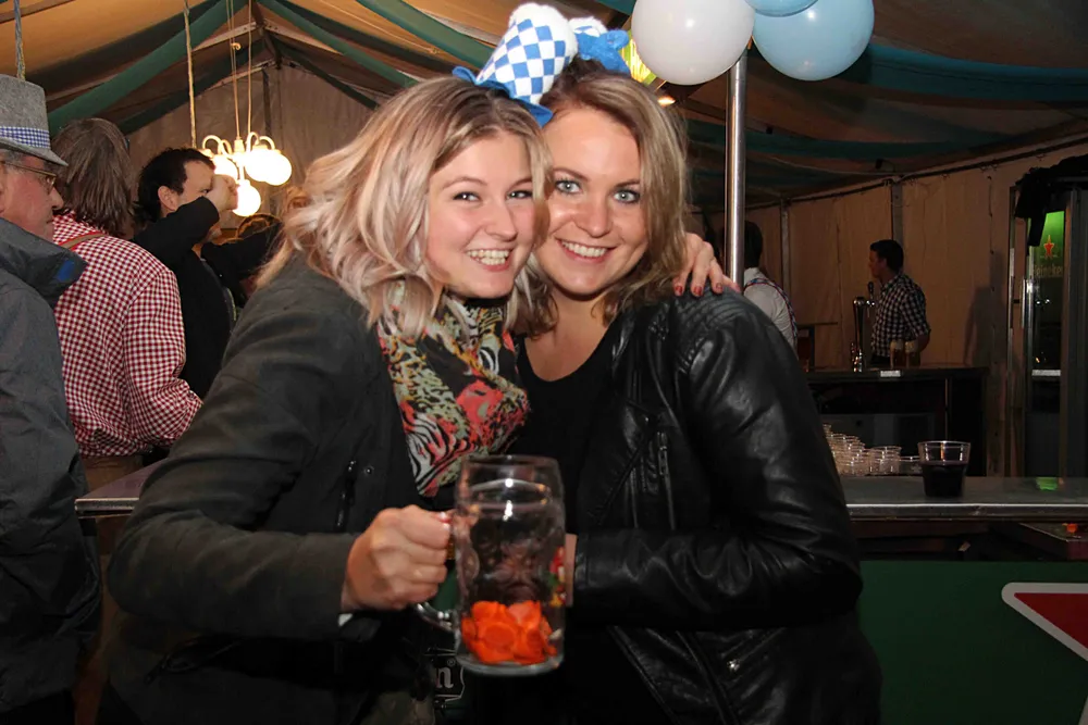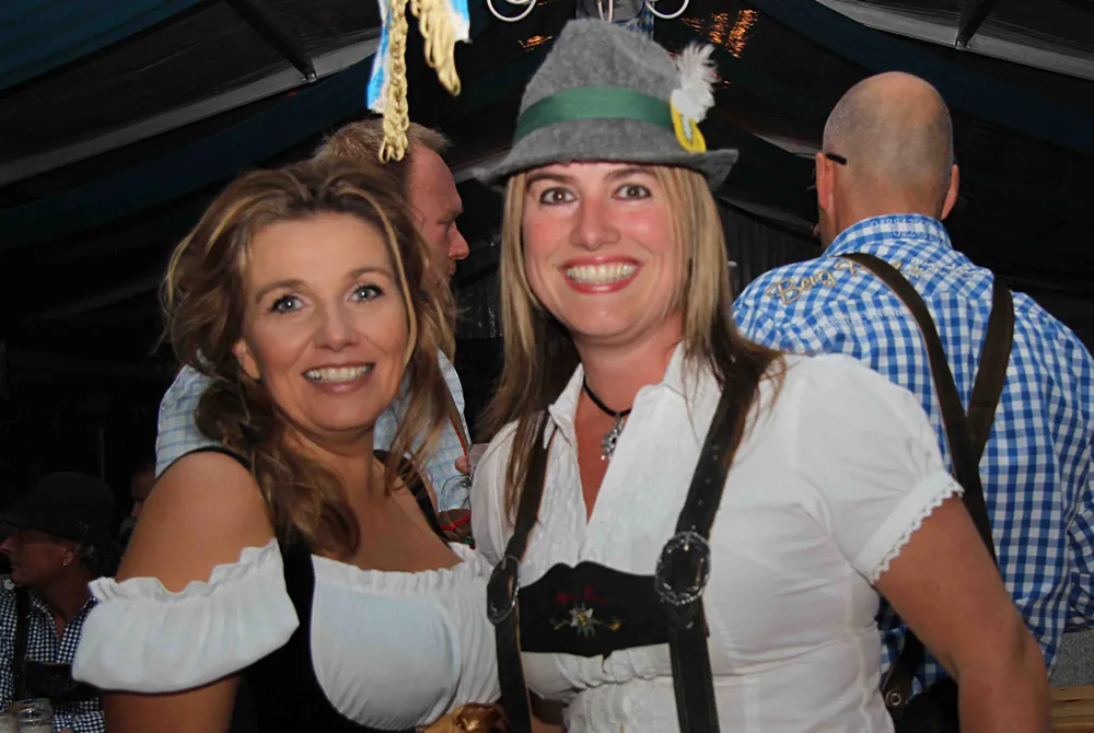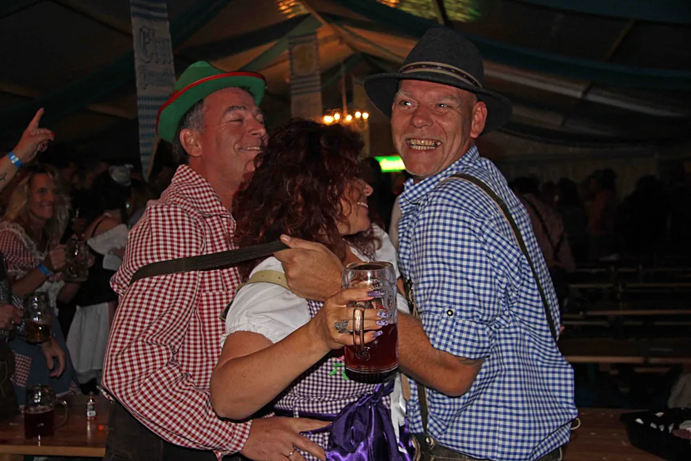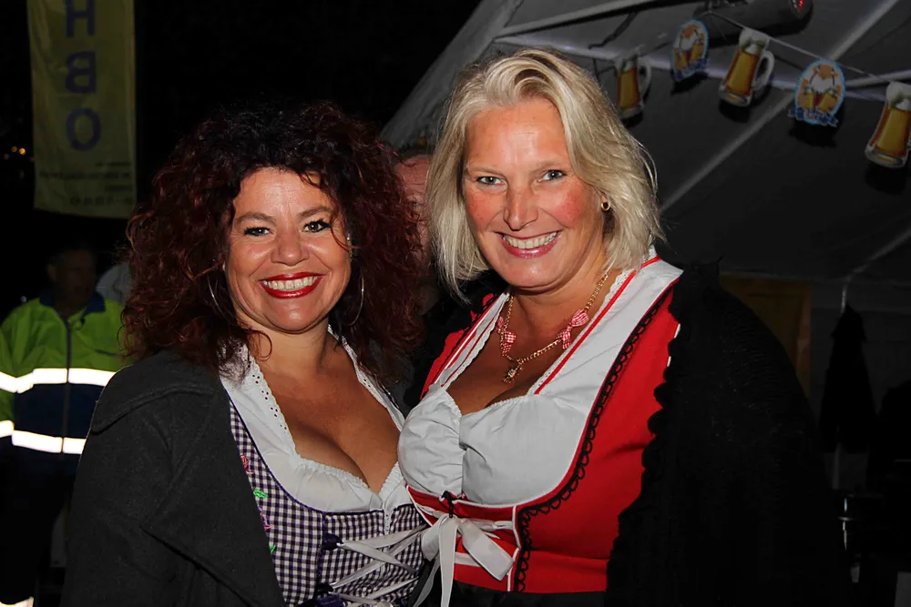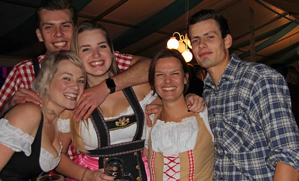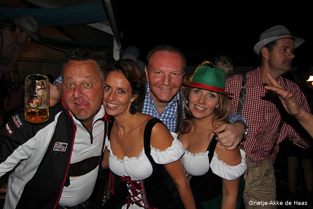 Bijna iedereen van het massaal toegestroomde publiek had zich in lederhosen gehesen of in de zo typerende korte wijduitstaande dirndl jurk, compleet met fraaie kousen tot nét boven de knie. "Wat jammer dat dit pas voor de eerste keer wordt georganiseerd", verbaasde een feestganger zich, "het is zó leuk, ik kom volgend jaar weer." Wat vrijwel iedereen van piepjong tot aardig op leeftijd beaamde. Opperbest vermaakten ze zich aan de tafels waar de pullen bier bijna niet aan te slepen waren, genietend het overvloedige eten.