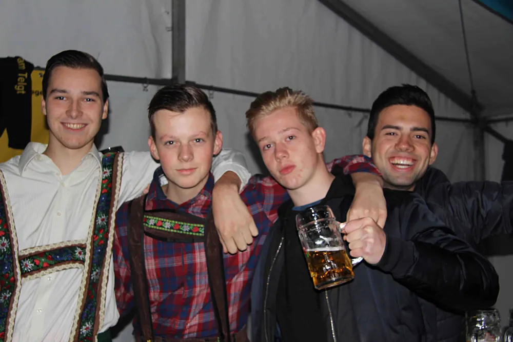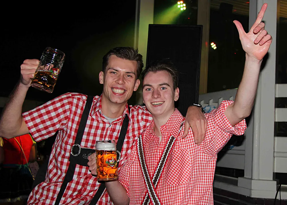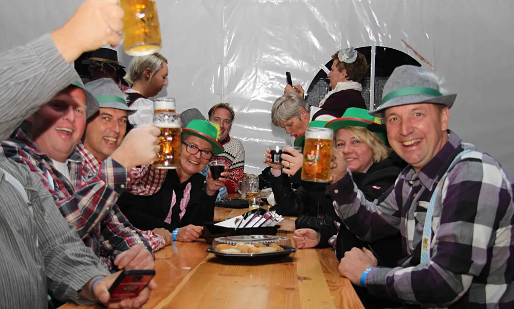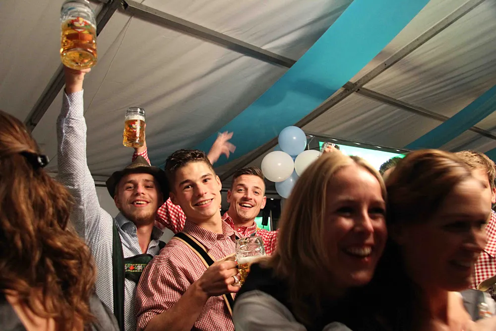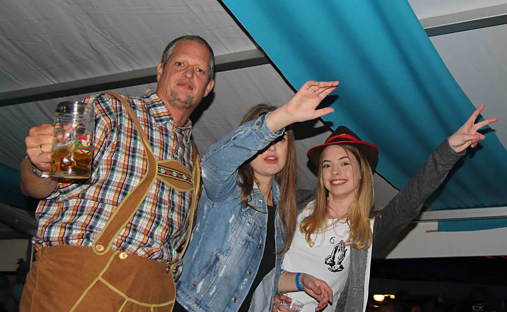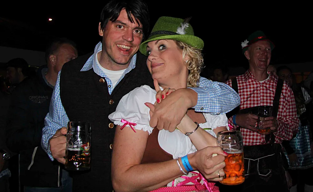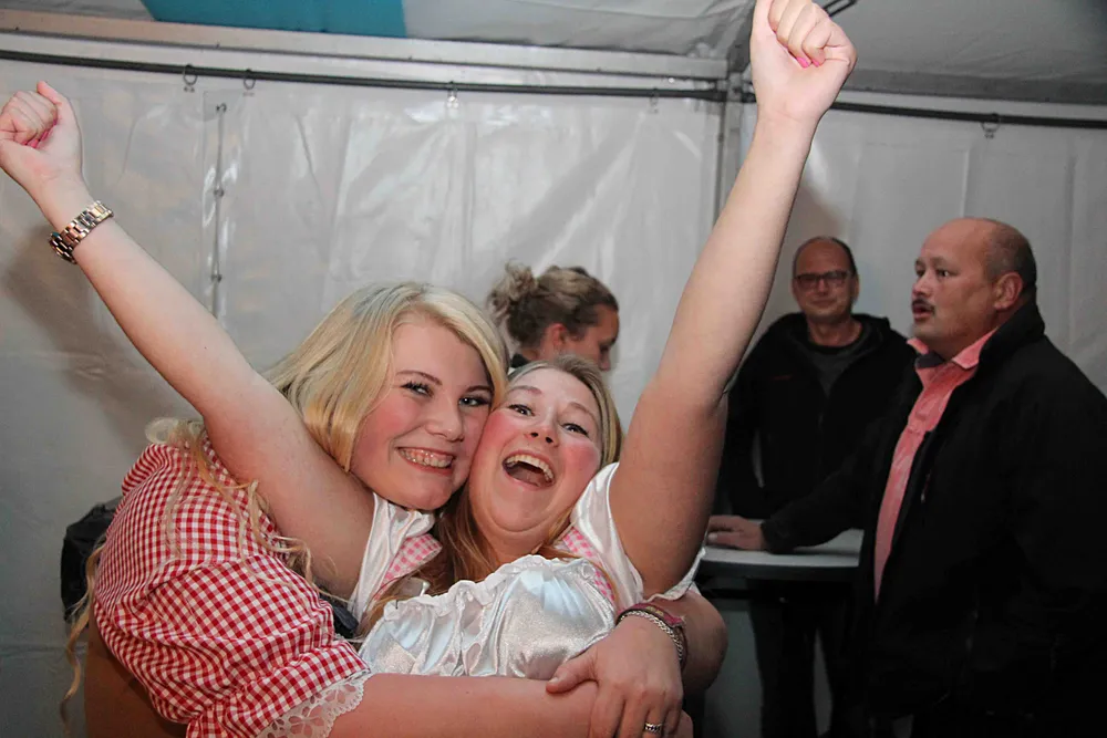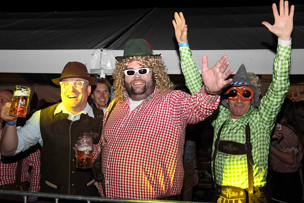 Bijna iedereen van het massaal toegestroomde publiek had zich in lederhosen gehesen of in de zo typerende korte wijduitstaande dirndl jurk, compleet met fraaie kousen tot nét boven de knie. "Wat jammer dat dit pas voor de eerste keer wordt georganiseerd", verbaasde een feestganger zich, "het is zó leuk, ik kom volgend jaar weer." Wat vrijwel iedereen van piepjong tot aardig op leeftijd beaamde. Opperbest vermaakten ze zich aan de tafels waar de pullen bier bijna niet aan te slepen waren, genietend het overvloedige eten.