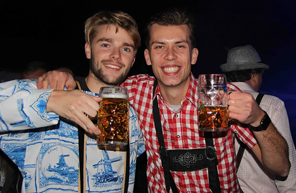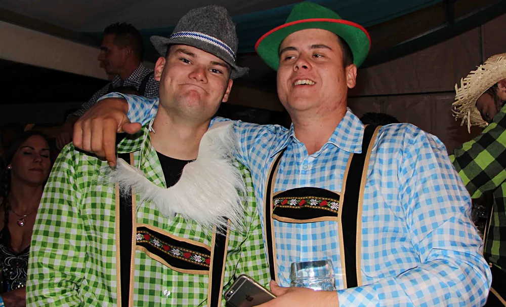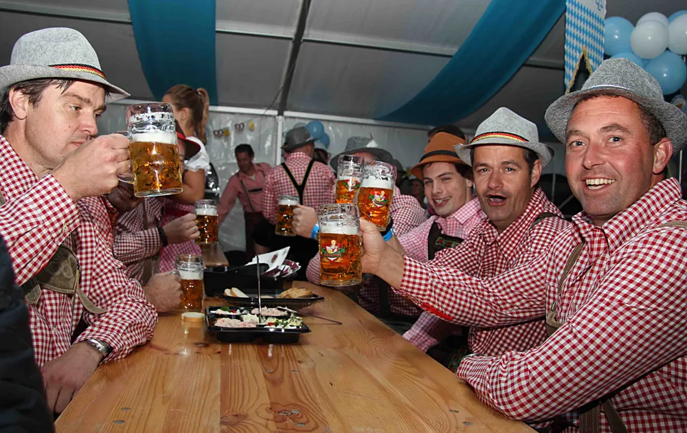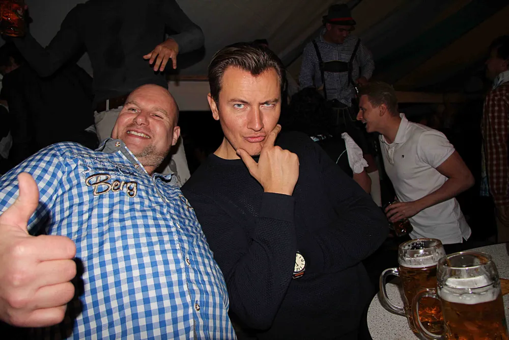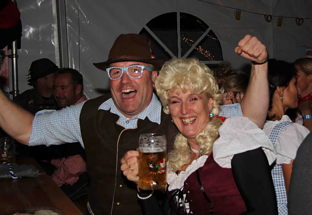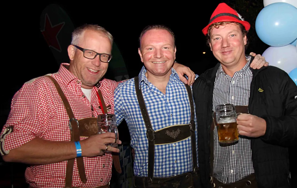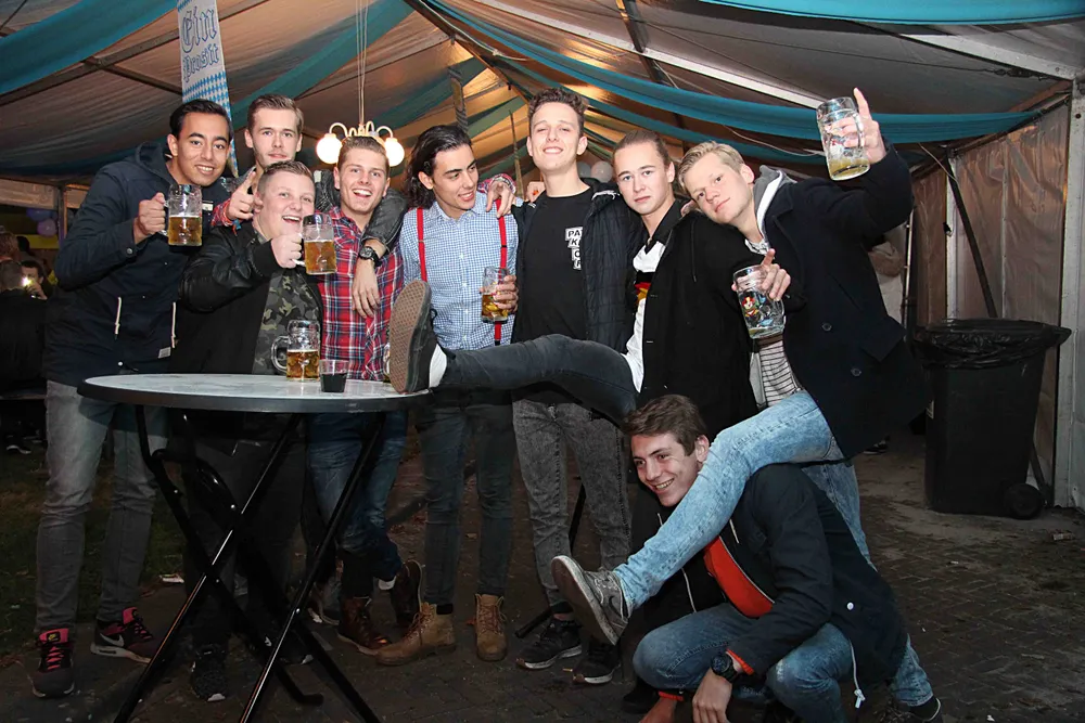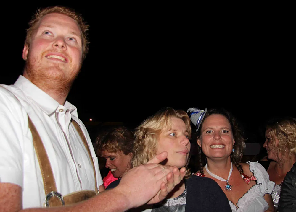 Bijna iedereen van het massaal toegestroomde publiek had zich in lederhosen gehesen of in de zo typerende korte wijduitstaande dirndl jurk, compleet met fraaie kousen tot nét boven de knie. "Wat jammer dat dit pas voor de eerste keer wordt georganiseerd", verbaasde een feestganger zich, "het is zó leuk, ik kom volgend jaar weer." Wat vrijwel iedereen van piepjong tot aardig op leeftijd beaamde. Opperbest vermaakten ze zich aan de tafels waar de pullen bier bijna niet aan te slepen waren, genietend het overvloedige eten.