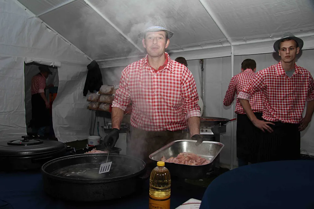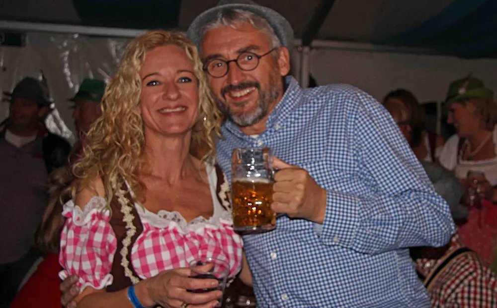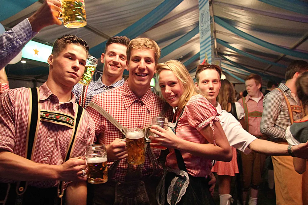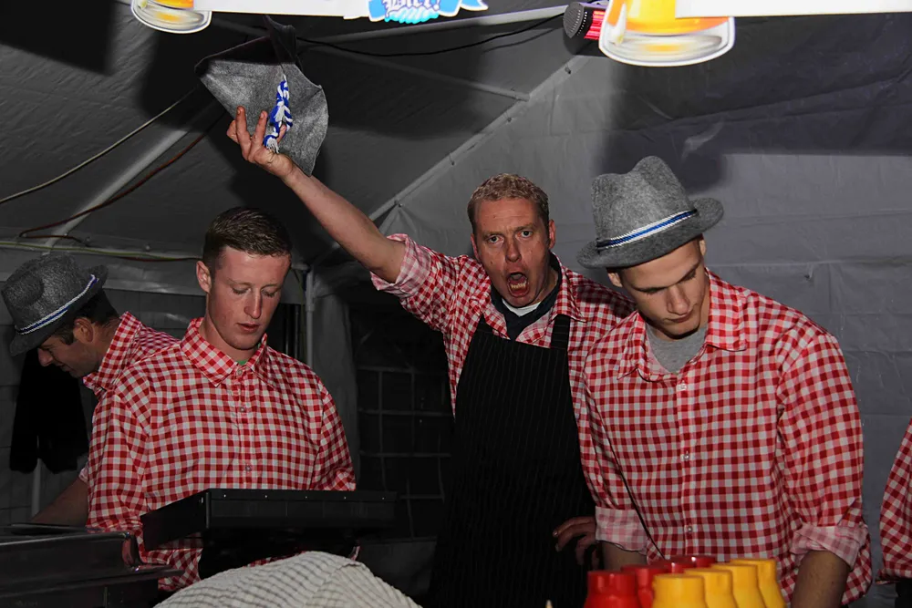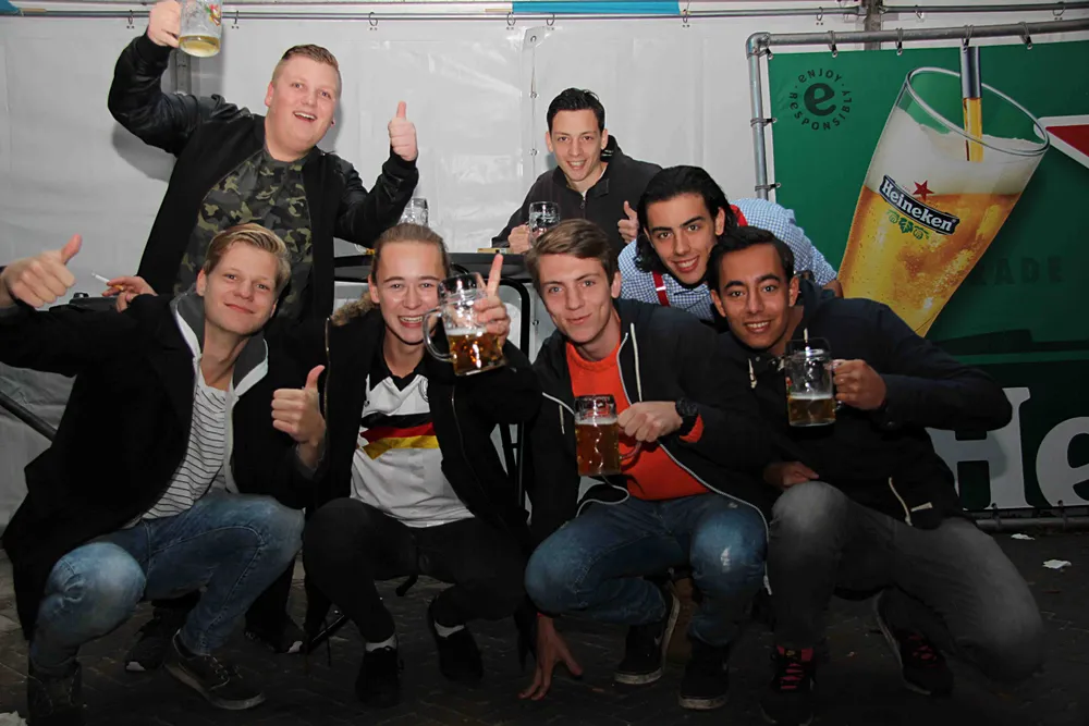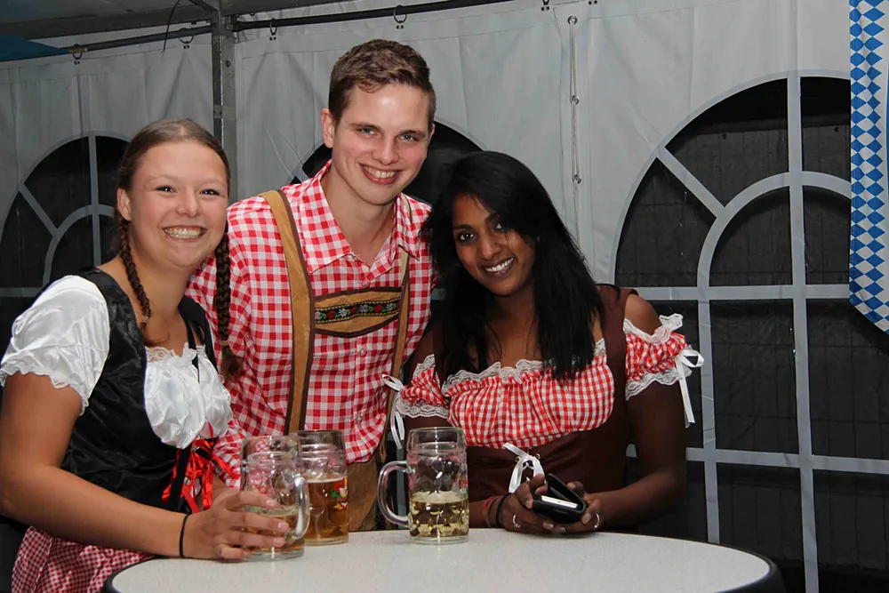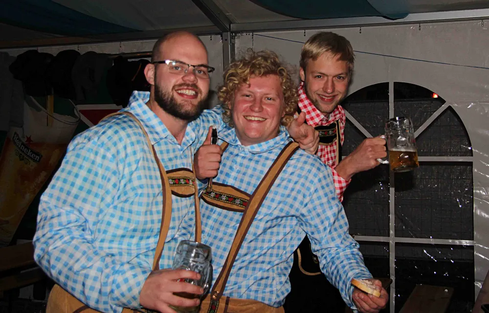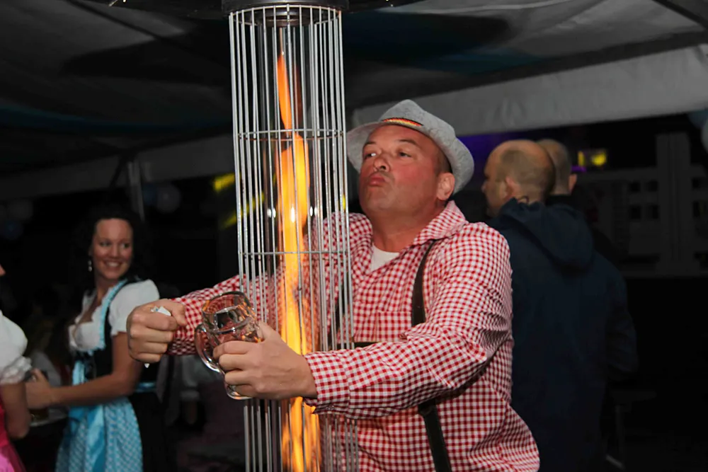 Bijna iedereen van het massaal toegestroomde publiek had zich in lederhosen gehesen of in de zo typerende korte wijduitstaande dirndl jurk, compleet met fraaie kousen tot nét boven de knie. "Wat jammer dat dit pas voor de eerste keer wordt georganiseerd", verbaasde een feestganger zich, "het is zó leuk, ik kom volgend jaar weer." Wat vrijwel iedereen van piepjong tot aardig op leeftijd beaamde. Opperbest vermaakten ze zich aan de tafels waar de pullen bier bijna niet aan te slepen waren, genietend het overvloedige eten.
