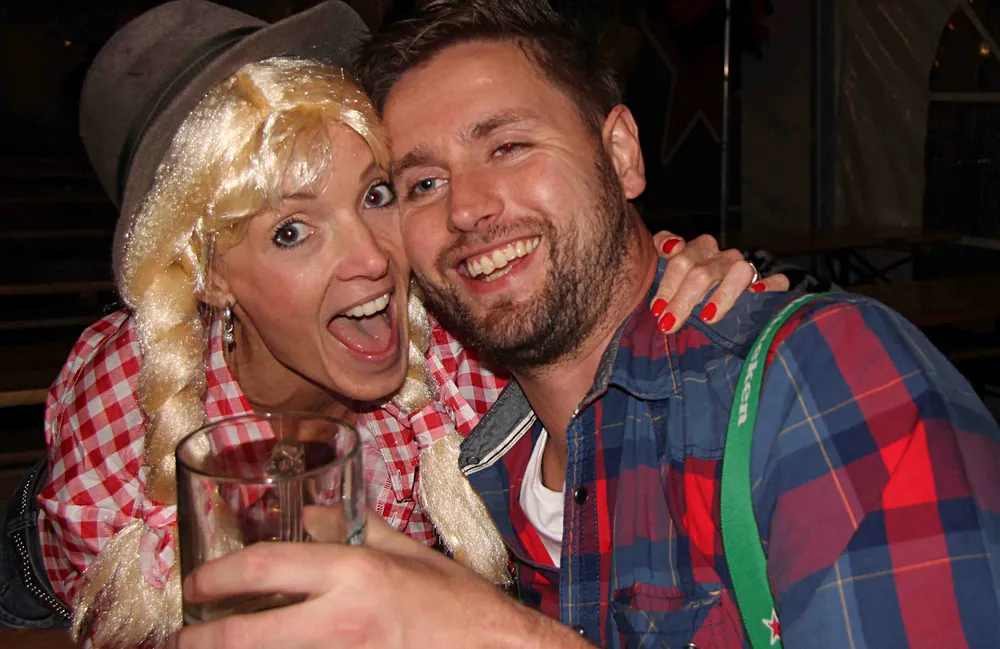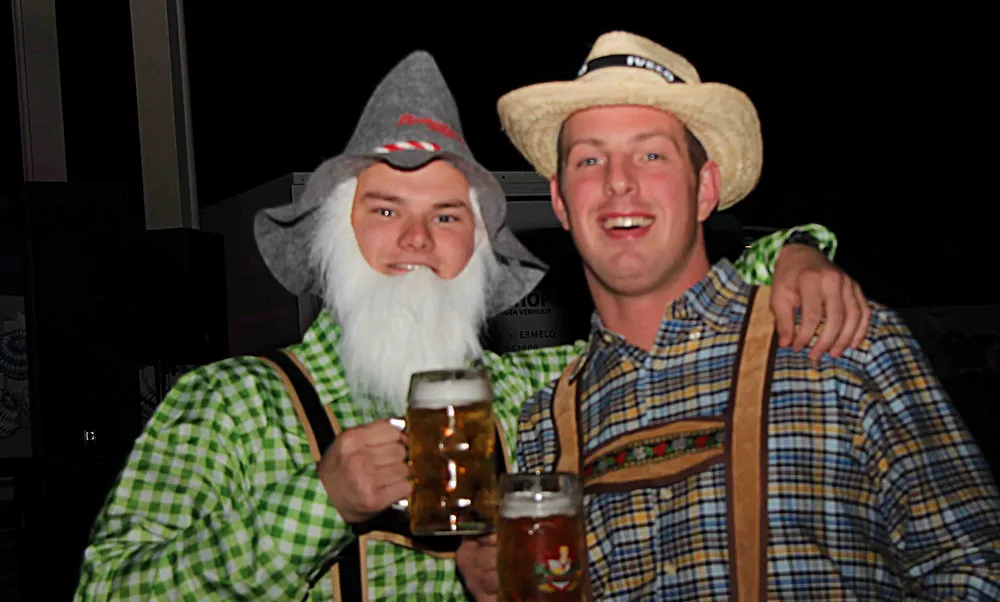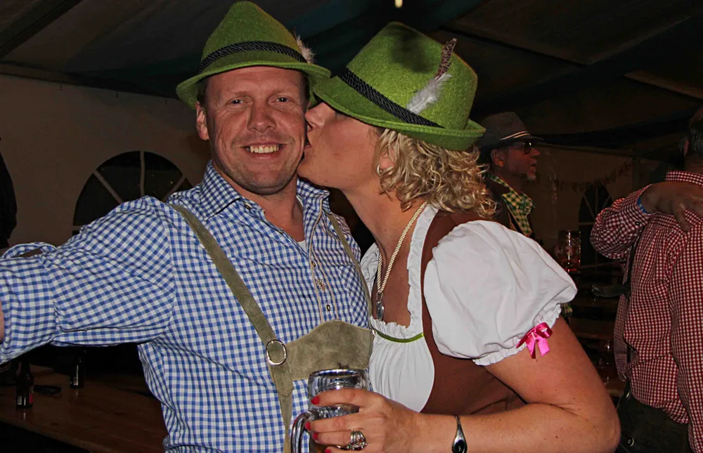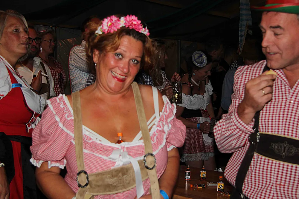 Heel veel blote boezem sierden de decolletés van de dames, waar sommige mannen amper van af konden blijven. Maar er waren ook prachtige stoere mannenkuiten. Al dat moois viel te bewonderen zaterdagavond 8 oktober tijdens het eerste Oktoberfest op 't Weitje, een initiatief van Marco van Dijk van Café De Molenaer en Marnix Grift van Café De Veluwe.