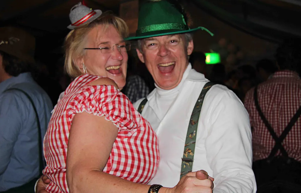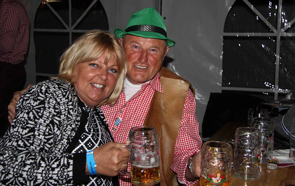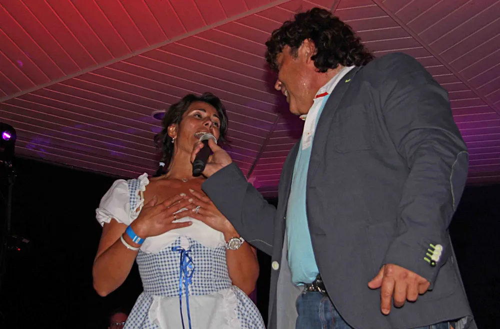Naarmate de avond vorderde gingen de voetjes van de vloer op de muziek van diverse Duitse acts. Waarbij mening enthousiasteling boven op de tafel stond te dansen. Echt vuurwerk werd het met de komst van Dennie Christian (60), de Duitse schlagerzanger, die zowat het dak eraf blies met eigen bekende hits als ook regelrechte Duitse smartlappen van zijn collega-zangers. De onvervalste klassiekerDu van Peter Maffay bijvoorbeeld werd luidkeels door iedereen meegeblèrd: 'Doehoehoe, du allein kannst mich verstehen'... . Ster van de avond werd Linda van den Berg die door Dennie Christian werd uitgenodigd een lied met hem te zingen.