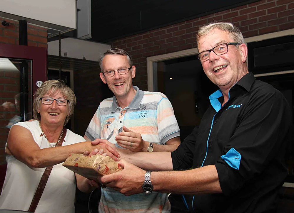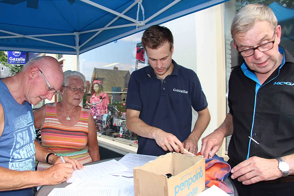 Gerard Elbertsen en zijn vrouwbleken van alle deelnemers de meeste vragen goed te hebben beantwoord. Uit handen van Rikkert Vliek kreeg het stel een onderhoudsset voor de fiets. Wat het goed kan gebruiken, vooral sinds de aanschaf van een e-bike. "We pakken de fiets veel vaker dan voorheen", beweerden ze stellig.