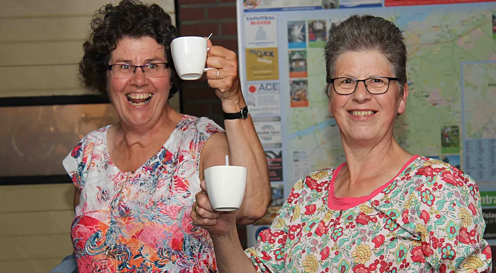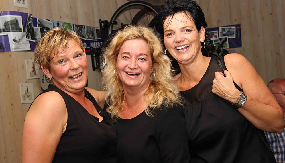 Zorgen om het voorspelde weer maakte niemand zich."Een paraplu mee? Ben je mal! Als we nat worden, dan worden we maar nat." Achteraf bleek het ook niet nodig. Op een paar verfrissende regendruppen was iedereen voor de bui losbarstte terug bij Vliek Tweewielers, waar Rikkert en Berend Vliek klaarstonden met koffie en een hapje en een drankje.