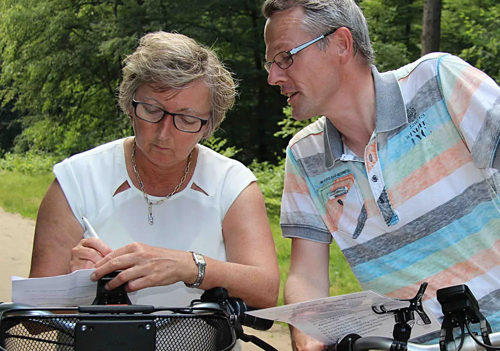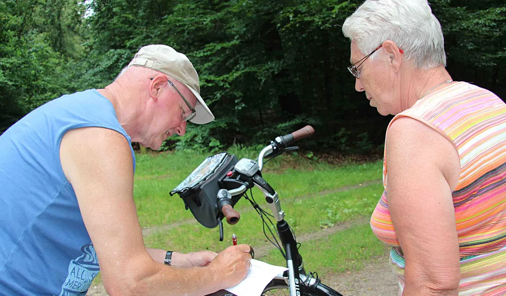 De route op zich was erg fraai,afwisselend en stond duidelijk op papier aangegeven. Waarover iedereen vol lof was. Toch heerste er soms twijfel onder de deelnemers. Dat zorgde voor de nodige hilariteit. "Moeten we nou links of rechts", stond het gezelschap in dubio. Waarop een mannelijke deelnemer de knoop doorhakte door te zeggen: "We goan hier maar langs, want ik wil wel op tied thuus komme." De juiste keus bleek achteraf, ze kwamen allemaal weer veilig de dam van Vliek Tweewielers aan de Groeneweg 17 oprijden.