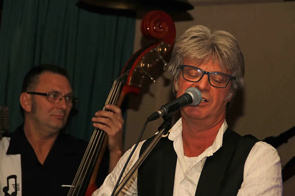 Fans weten inmiddels dat een optreden van The Razzles garant staat voor swingende muziekavond. Wie de formatie voor het eerst hoorde toonde zich aangenaam verrast door het sfeertje wat de in stijl verklede mannen wisten te creëren. Wat alles te maken heeft met het repertoire - van Elvis Presley tot Bill Haley - en de sound van de band met een prominente rol voor de contrabas. Want het is juist het diepe en lage geluid wat voor het swingeffect zorgt. Waarbij de op de snaren tokkelende muzikant de muziek door het Eetcafé liet denderen.