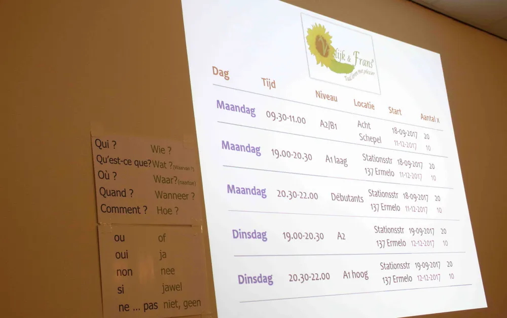 Maandag 4 december gaf Alike Last een proefles voor belangstellenden. Die hadden voornamelijk als doel om hun Frans op te frissen. "In de laatste jaren dat de mms (Middelbare meisjesschool) nog bestond, begin jaren zestig heb ik examen gedaan in Frans. Maar ik wil het graag weer oppakken. In de eerste vakantieweek in Frankrijk zeg ik namelijk helemaal niets. Pas in de laatste week durf ik het aan met mijn nog beperkte woordenschat én met handen en voeten."