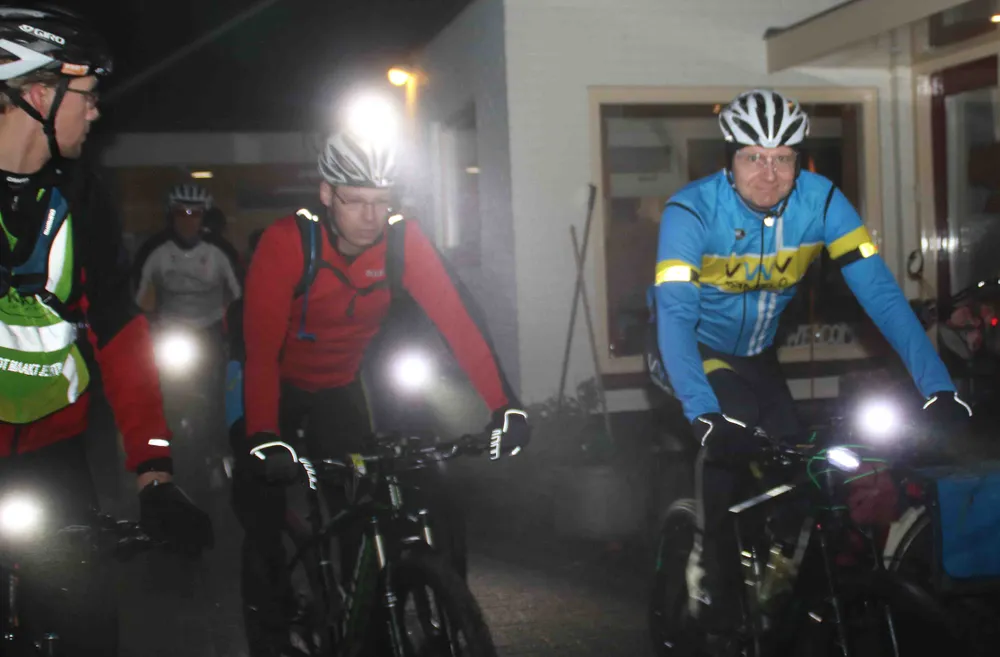 Een groep van 30 mannen en vrouwen zijn vanavond, vrijdag 22 december, om half acht stipt vertrokken voor Nightride voor mountainbikers die Vliek Tweewielers, de rijwielspecialist aan de Groeneweg 17 in Ermelo, voor het tweede achtereenvolgende jaar houdt.