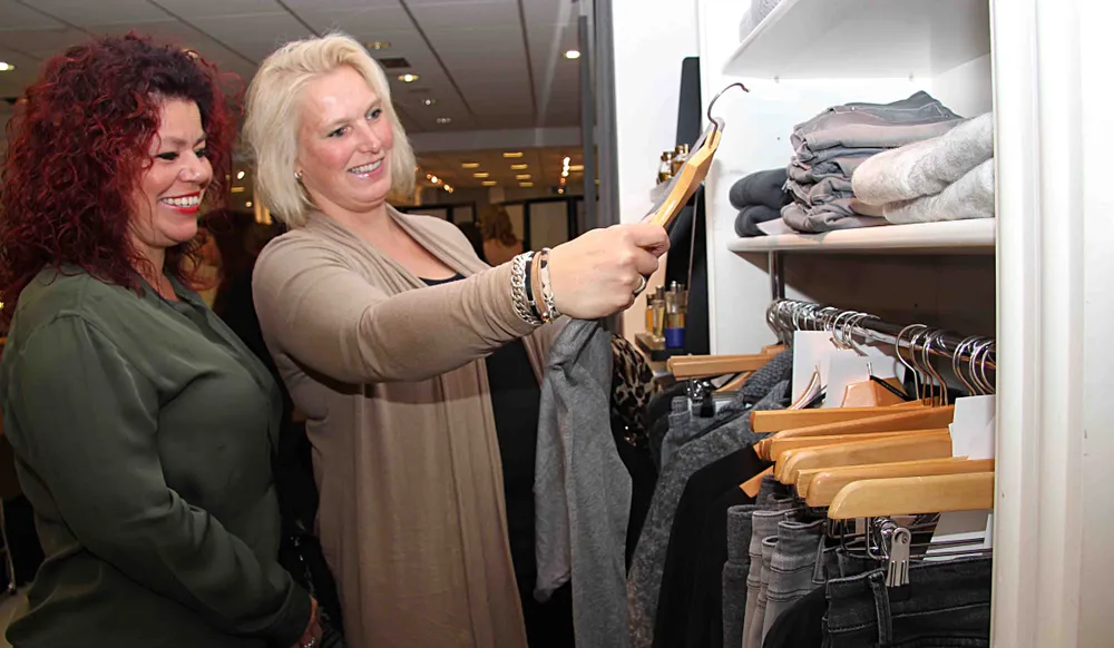 Na de finale van de modeshow was het shoppen geblazenin de sfeervol ingerichte winkel, want de kleding die de mannequins zo stijlvol hadden geshowd werkte zeer inspirerend. Om de vele clientèle op weg te helpen waren de geshowde items gelabeld. Ook buur-ondernemer Leene schoenen & tassen had de deuren wijd open voor het publiek van de modeshow van Moda Donna e Si. Veel schoenen die de mannequins droegen kwamen namelijk uit het collectie van Leene.