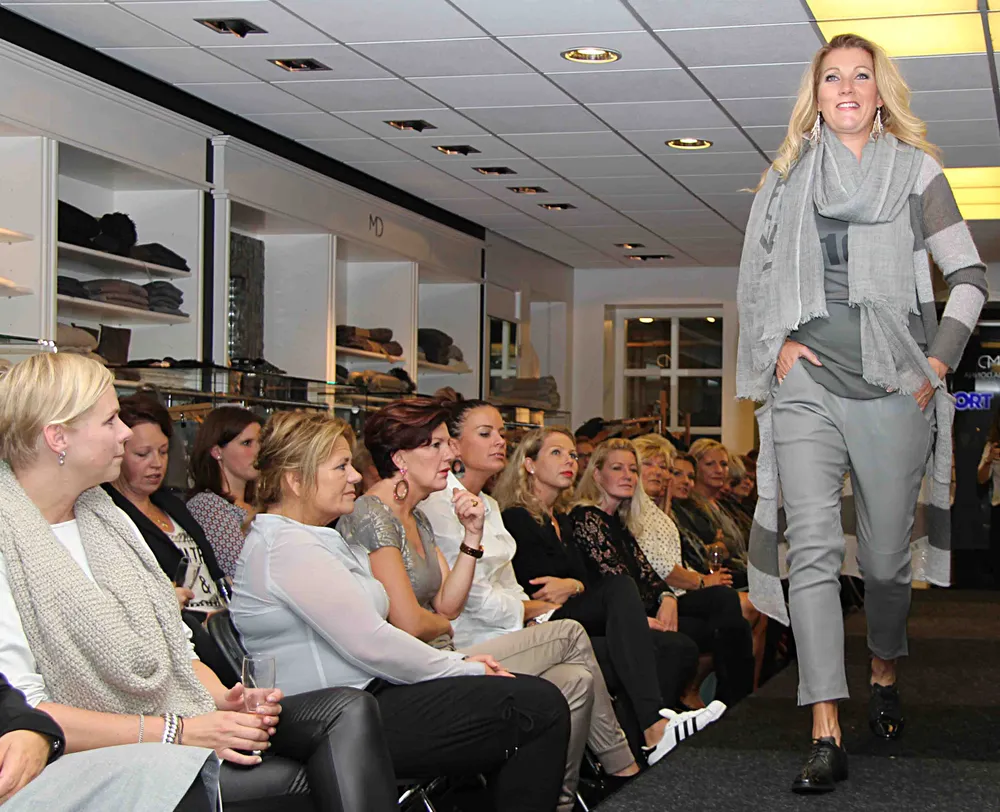 Vier rijen dik genoten gisteravond, woensdag 23 september, van de meest mooie, exclusieve, elegante, sportieve én stoere najaarsmode voor dames en heren van Moda Donna e Si. De geshowde collectie blonk uit in een groot knuffelgehalte. De sjaals, vesten en truien in de meest prachtige breisels bijvoorbeeld. Om behaaglijk in weg te kruipen nu het weer wat kouder wordt. Óf om als geliefde of kind, samen op de bank, er eens genoeglijk tegenaan te vleien.