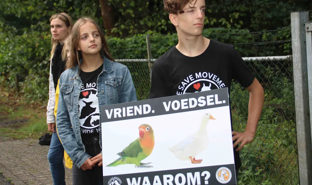 Save Movement the Netherlands laat door actie te voeren sinds ongeveer een jaar aan mensen zien dat dieren individuen zijn net als wij, en niet voor ons zouden moeten lijden en doodgaan. Vanochtend, dinsdag 14 augustus, demonstreerden zo'n 25 aanhangers bij Tomassen Duck-To BV aan Fokko Kortlanglaan 116, het bedrijf dat verse bevroren pekingeend en eendendelen produceert.