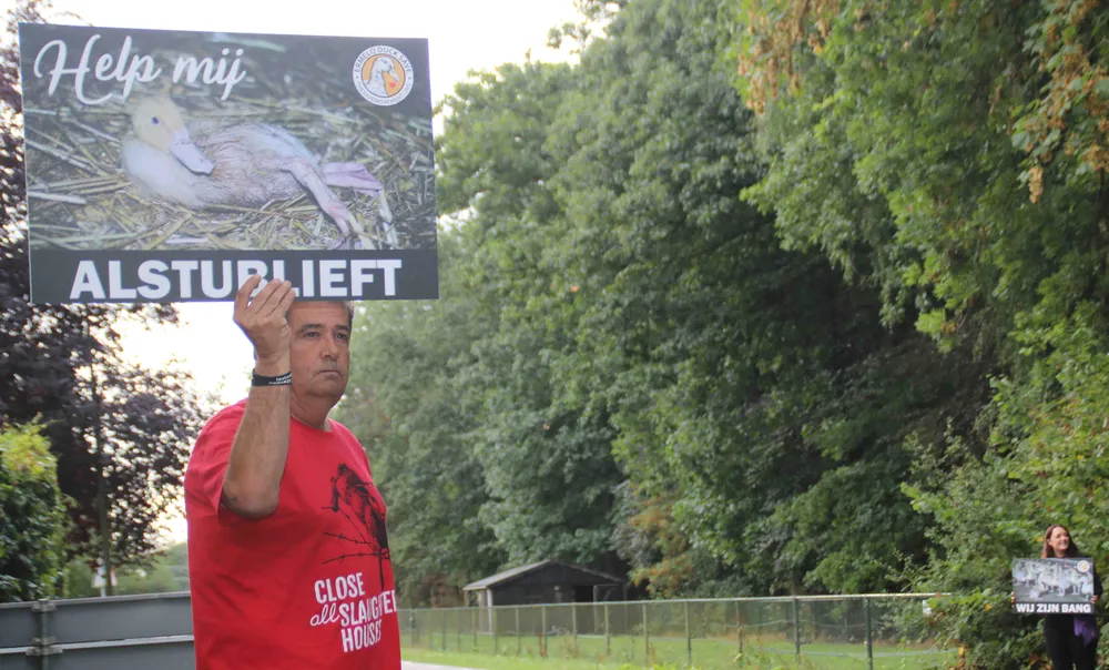 Cameron is van mening dat een dier een individu is met een eigen karakter. Levende wezens volgens haar die willen doorleven en gewoon voor hun kleintjes willen zorgen. De ongeveer 25 demonstranten mochten van buitenaf in de kratten met eenden kijken. "Ik word zo naar van de massaliteit en het besef dat ze er straks niet meer zijn", huiverde Cameron. "Daarom geven we deze dieren een gezicht door ze te filmen en de beelden te delen via social media."