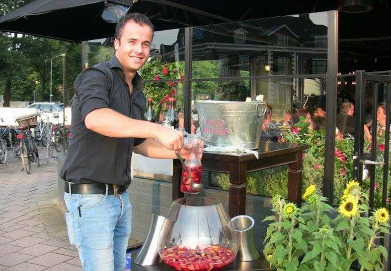 Bij de ingang staat een grote pan met smakelijke paëlla te pruttelenen op de barbecue liggen grote tijgergarnalen heerlijk gaar te roosteren. Het water loopt er van in je mond bij het zien van dit heerlijke verse voedsel. Buiten heersen Spaanse temperaturen, het zweet staat de dames van de bediening op het gezicht. Van zo'n warme zomeravond krijg je het dan ook met recht Spaans benauwd, zeker als je zo hard moet werken om het iedereen aan tafel naar zijn zin te maken.