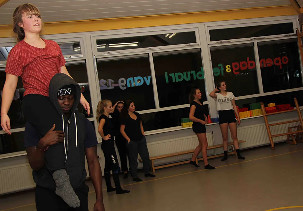 Het oefenen is hard werken voor de meiden, maar de inzet en passie spatten van ze af, zo zijn ze van plan het publiek een top show voor te schotelen. Onder het geven van instructies danst Renate net zo fanatiek mee. "Achter, achter, draai, rechts, links, draai, 5,6,7 en hup, hup, hup, sprongetje hup." De lange weelderige staarten van het gros van de meiden zwiepen in het rond, over de vloer en voor hun gezicht langs. "Nu doen we de capuchon op die we nog niet hebben", vervolgt Renate, "en dan word jij opgehaald door Timo." Een paar seconden flaneert één van de meiden op de sterke schouders van Timo door de zaal, met hoogrode blosjes en glinsterende ogen van spanning én puur plezier.