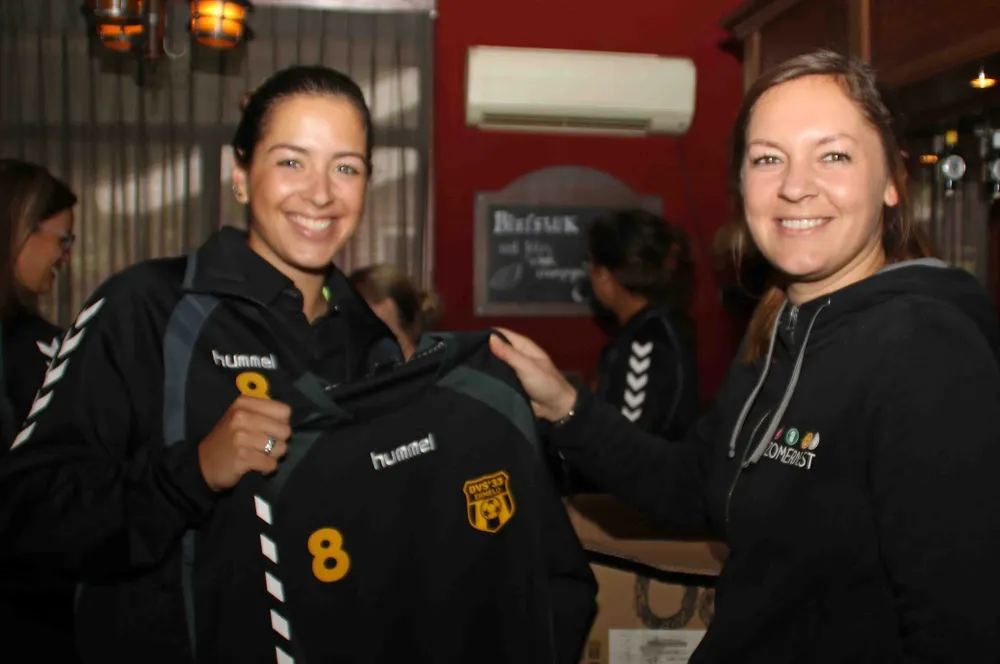 Dames1 is erg blij met de shirts. Wie weet hoe deze bijdragen aan de ambitie van het elftal. Marielle en Tamara vertelden dat Dames 1 afgelopen seizoen kampioen werd, en komend seizoen speelt in de tweede klasse; de competitie start op 23 september. "Het doel van DVS'33 is behoud van Dames1 in de tweede klasse."