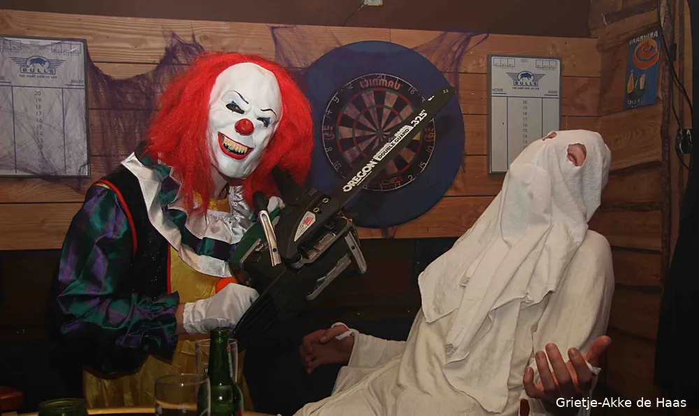 Een in verhouding nog aaibaar spookje lachte trots: "Kijk eens wat we hier neer hebben gezet, gaaf hè!" De TexSaloon was namelijk het lugubere toneel van Halloween dat erg in de smaak viel bij de feestgangers. Eigenaar Anita van As en haar vrienden hadden dan ook werkelijk alles uit de kast gehaald om het café om te toveren tot een waar griezelslot. Liefhebbers van Halloween kunnen zich trouwens gaan verheugen, want het is de bedoeling dat het griezelfeest een jaarlijks terugkerend evenement wordt.