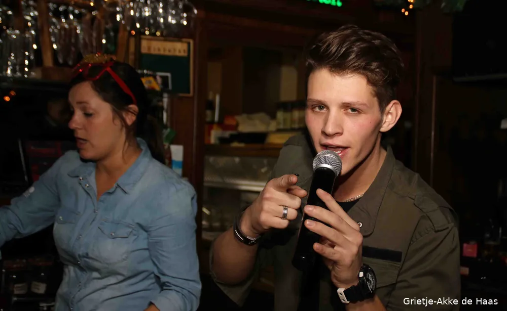 Niet de geboekte zanger Martin Williams, maar Tim van Leijenhorst maakt de kerstborrel die Bar/Cafetaria/Eetcafé ‘t Zomernest aan de Julianalaan 123 in Ermelo vrijdagavond 22 december hield, extra gezellig.