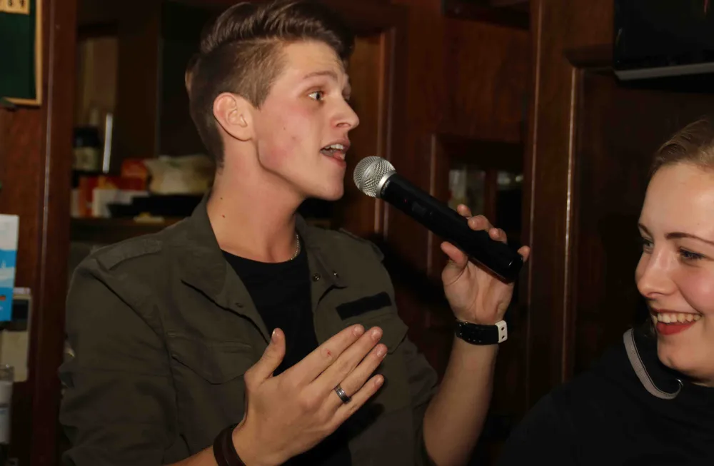 Kristiana Gederte, eigenaar van 't Zomernest, was aangenaam verrast door het spontane optreden van de jonge gast. Later op de avond was het dan écht de beurt aan Martin Williams om het dak eraf te zingen.