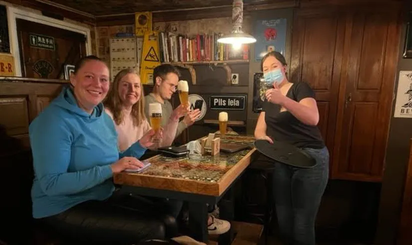 De sfeer in hartje centrum bij Grand Café Restaurant Het Postkantoor en Brasserie de Volksmond was al even gezellig. Henri Pijnenburg die Het Postkantoor in coronatijd overnam houdt ondanks alles, hij valt qua compensatieregelingen vrijwel buiten de boot, ogenschijnlijk de moed erin. "We denderen gewoon door." Klaar is Henri er wel mee. Hij is dan ook van plan de komende tijd Het Postkantoor te openen op donderdag, vrijdag en zaterdag.
