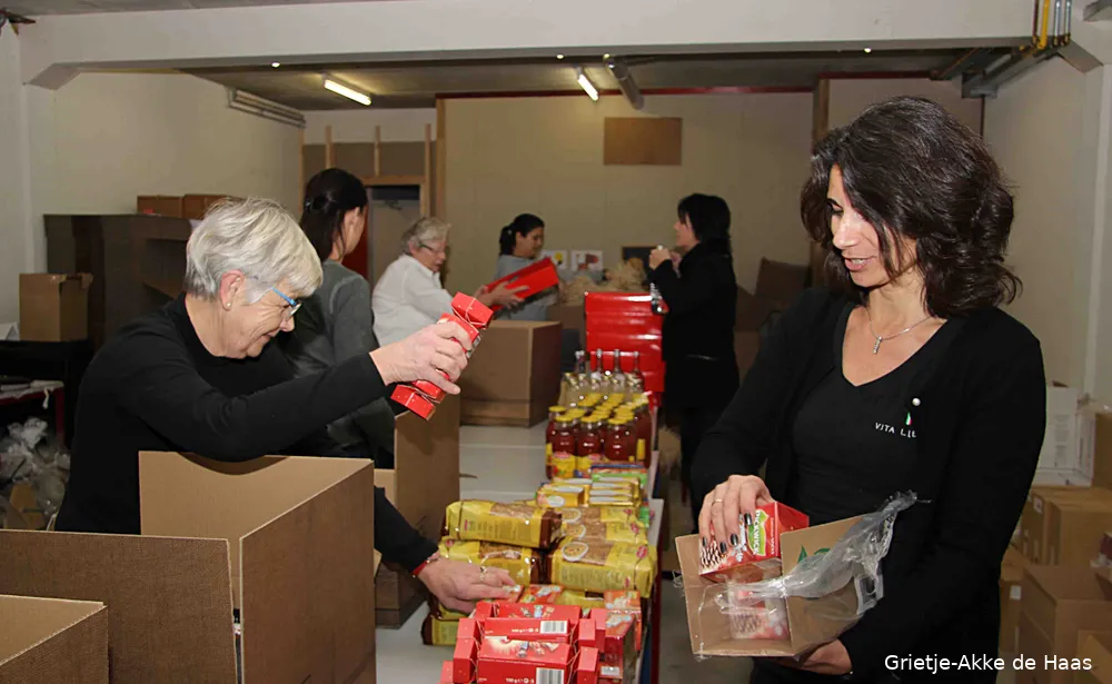 De hulptroepen zijn al vanaf vanochtend vroeg in de weermet het samenstellen van bijna 400 kerstpakketten voor Ploeger Logistics. Het personeel, maar ook relaties van het bedrijf, kunnen zich alvast gaan verheugen. Want de inhoud verdient een dikke pluim. Vanzelfsprekend verklapt Linda de producten niet. Maar voor ieder lid van het gezin zit er wel iets bij waar die veel plezier van heeft.