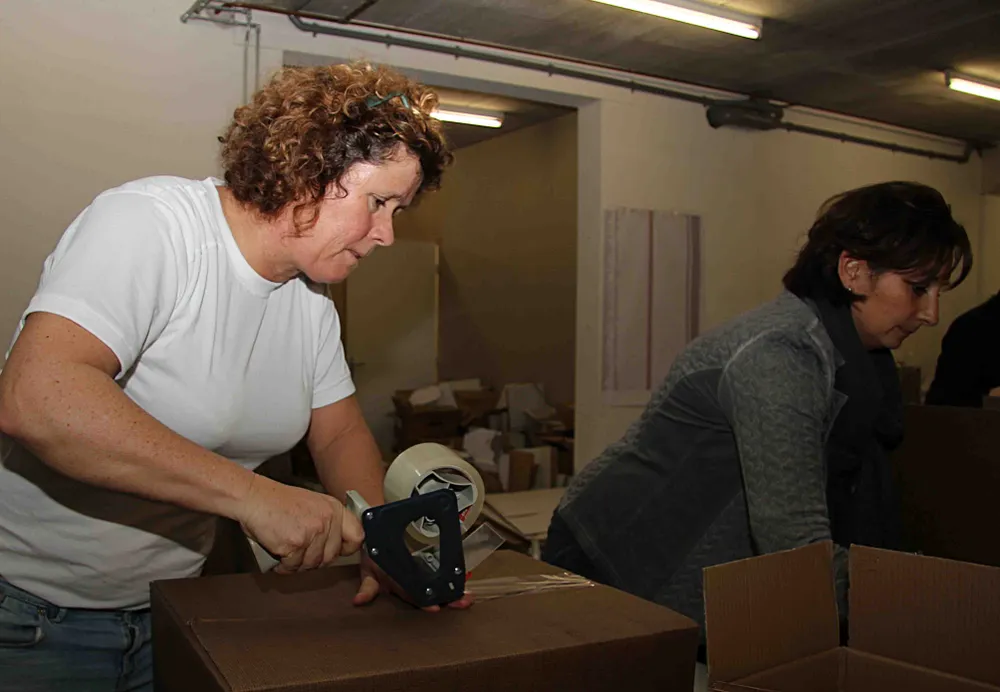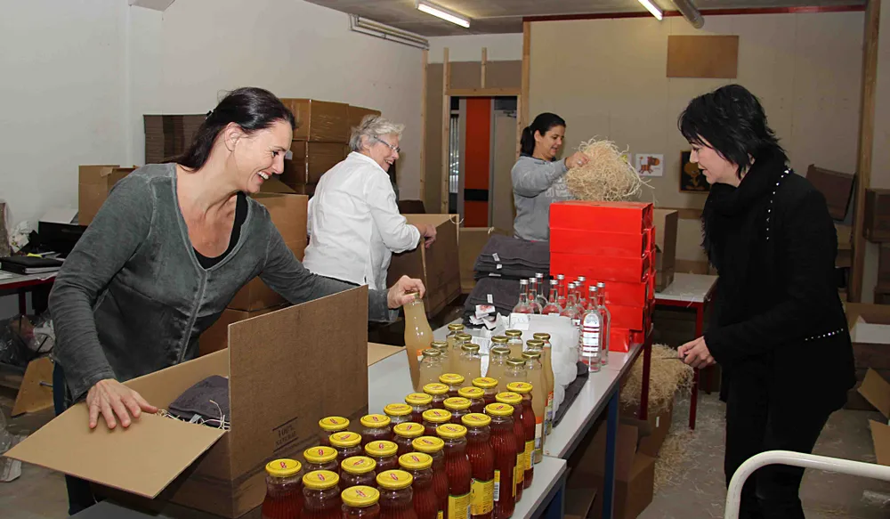 Dat verzekert een deelnemer van de hulptroepen die initiatiefnemers van Veluwe Geschenk, Linda van den Berg en Annemieke Helling, hebben ingeschakeld om zo'n 1500 Veluwe Geschenken samen te stellen. "En anders", roept een ander, "komen we morgen terug en gaan we verder. Maandag moet deze order namelijk klaar zijn."