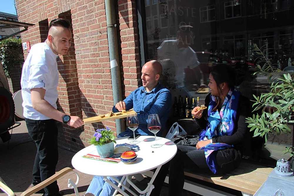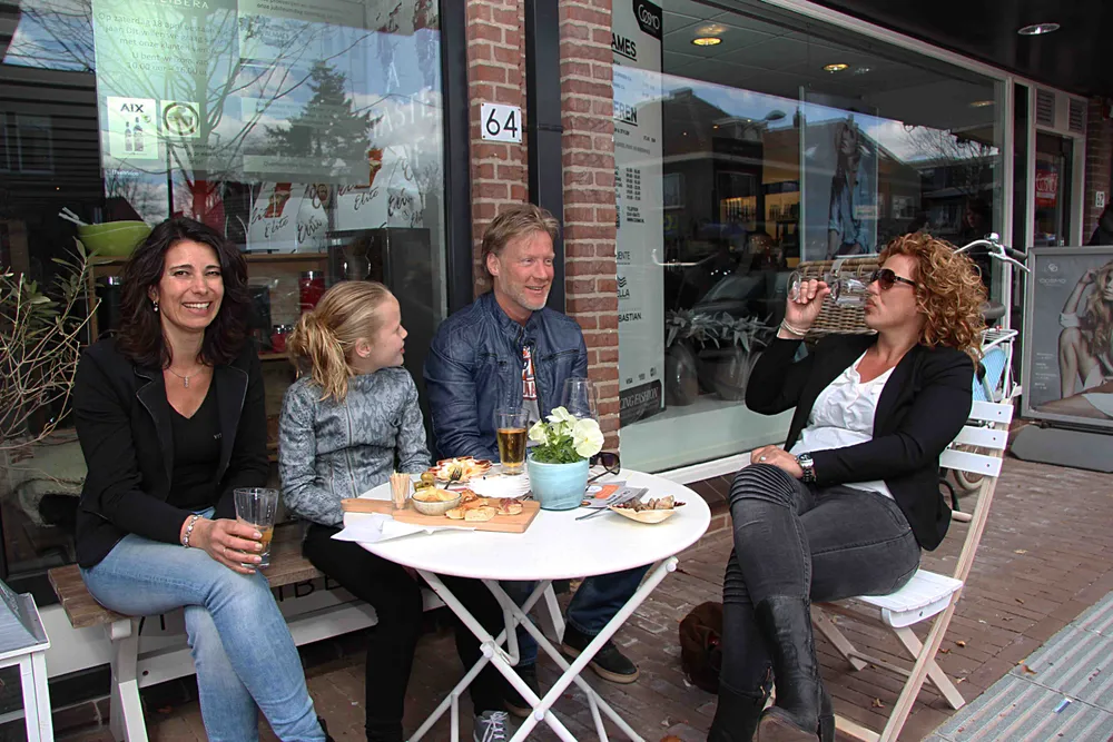 Het prachtige weer 'lokte' namelijk veel publiek naar het gezellige en sfeervolle terras van de in mediterrane stijl ingerichte delicatessenzaak met onder meer Italiaanse en biologische producten. Om te genieten van de heerlijke koffie, fris tot een glaasje wijn en de lekkernijen van Yornie van Dijk uit de Rollin' Cuisine van Ratatouille uit Harderwijk. De lekkernijen varieerden van Spaghetti Fongole - schelpdieren met een plukje overheerlijke spaghetti opgediend in een grote schelp- tot sneetjes Focacciabrood belegd met pesto en olijven of besmeerd met olijfolie en knoflook.