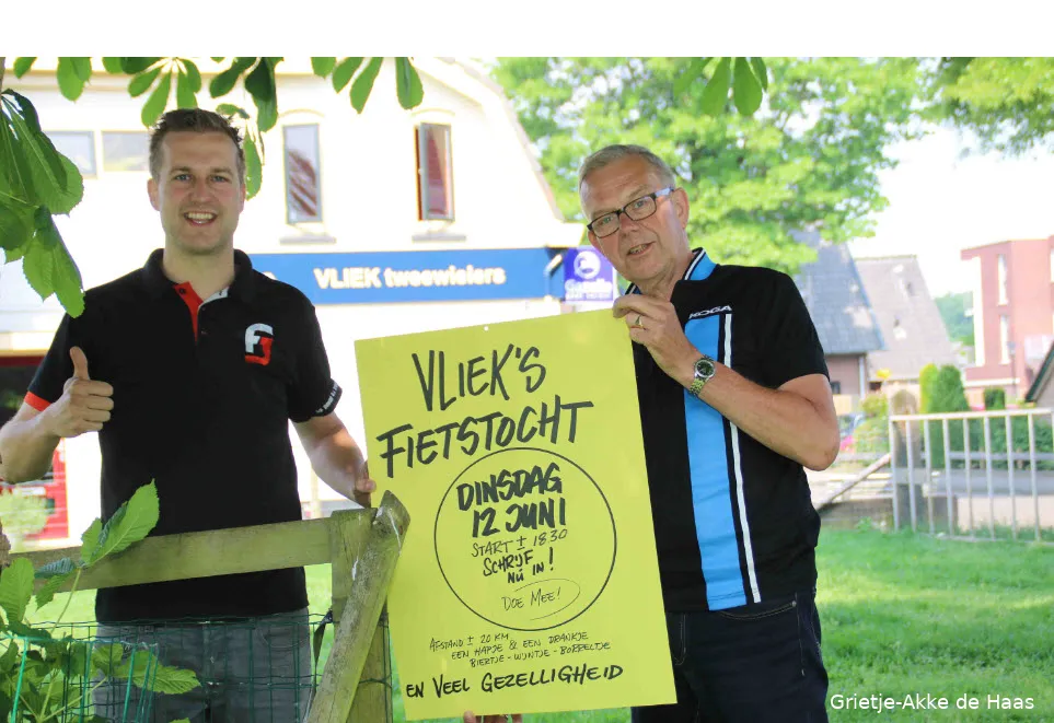 Vliek Tweewielers organiseert voor derde maal de gezelligste fietstocht van Ermelo die gepaard gaat met een zweempje competitie. Vlieks fiets-puzzel-tocht vindt plaats op dinsdagavond 12 juni: start tussen 18.00 - 18.30 uur bij Vliek Tweewielers op de dam aan de Groeneweg 17.