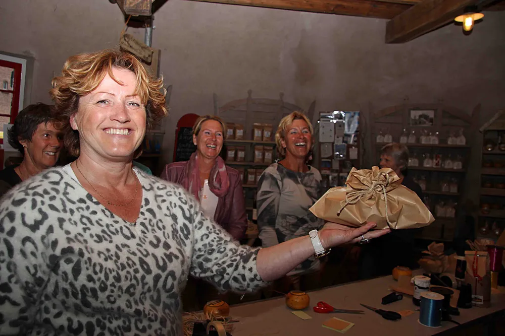 "We moesten haar toen we de winkel 41 jaar terug overnamen één ding beloven, dat we de producten altijd anders dan gebruikelijk inpakten." Maar wat is dan de X-factor van een mooi ingepakt presentje? Vrijwilliger Greet Boonstra antwoordde meteen: "Als de klant glunderend wegloopt!"