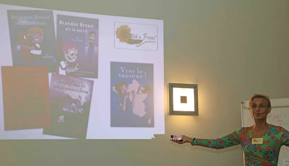 Welk niveau cursisten ook hebben, ze kunnen allemaal terecht bij Vrolijk & Frans, om op een ontspannen manier de Franse taal te leren spreken, verstaan en lezen, van beginners tot gevorderden. Het unieke van de lesmethode TPRS is dat de Franse taal onder meer wordt geleerd vanuit verhalen. Alike Last, docente Frans, haalde deze methode in 2007 vanuit Amerika naar Europa. "Ons brein is ingesteld op verhalen", lichtte zij toe, "daardoor leer je de taal makkelijker." Met een aantal basiswoorden leerde Alike de groep dat een eenvoudig verhaaltje zo is gemaakt.
