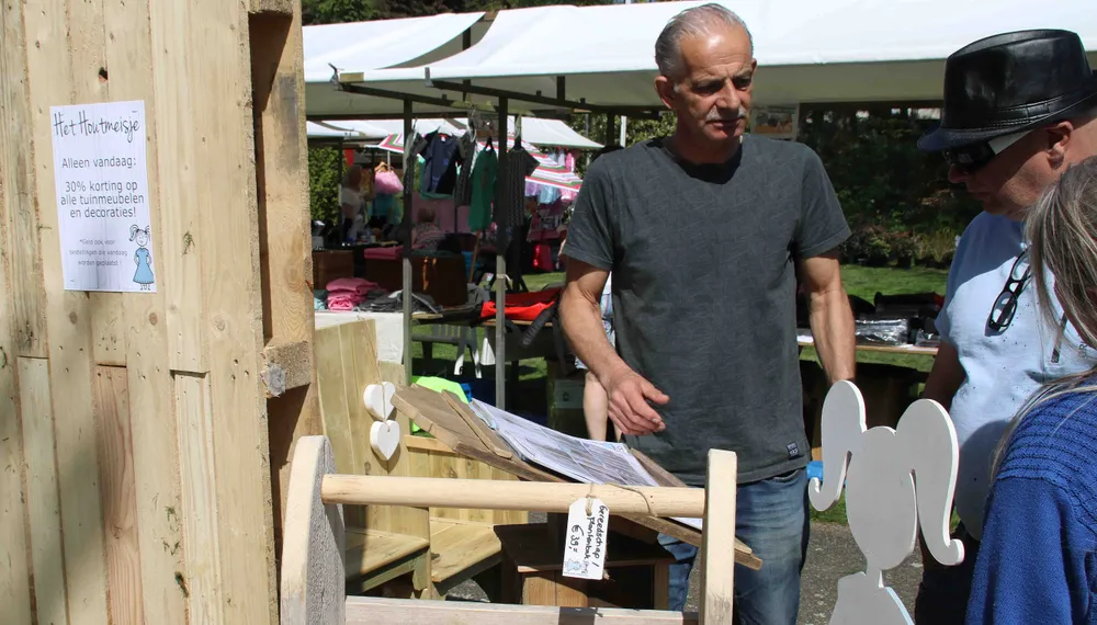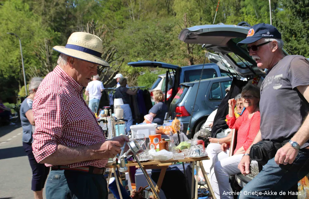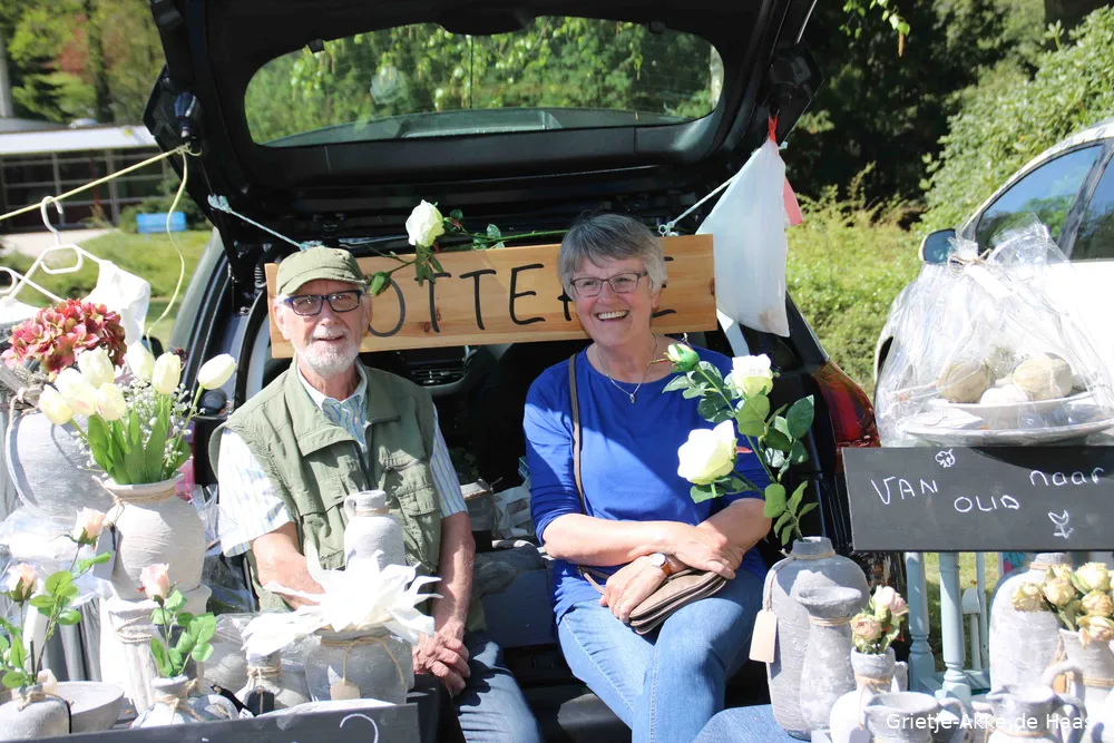 Zowel het publiek als de kofferbakverkopers deden hele goede zaken vandaag, zaterdag 21 april, tijdens de eerste kofferbakverkoop van dit jaar, op de stoep bij De Zaak van Ermelo op Landgoed Veldwijk.