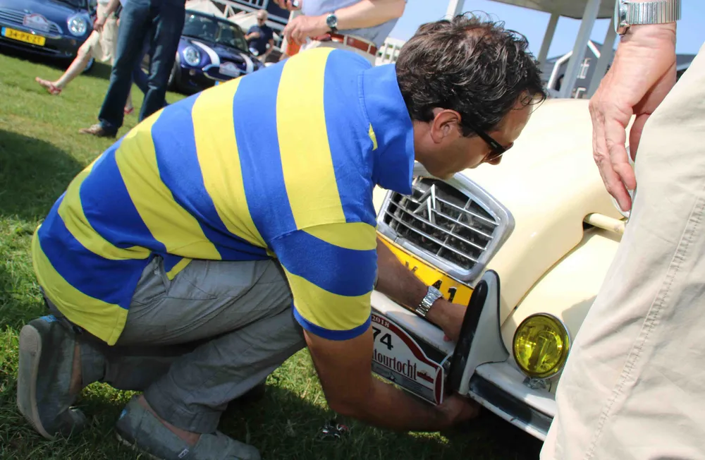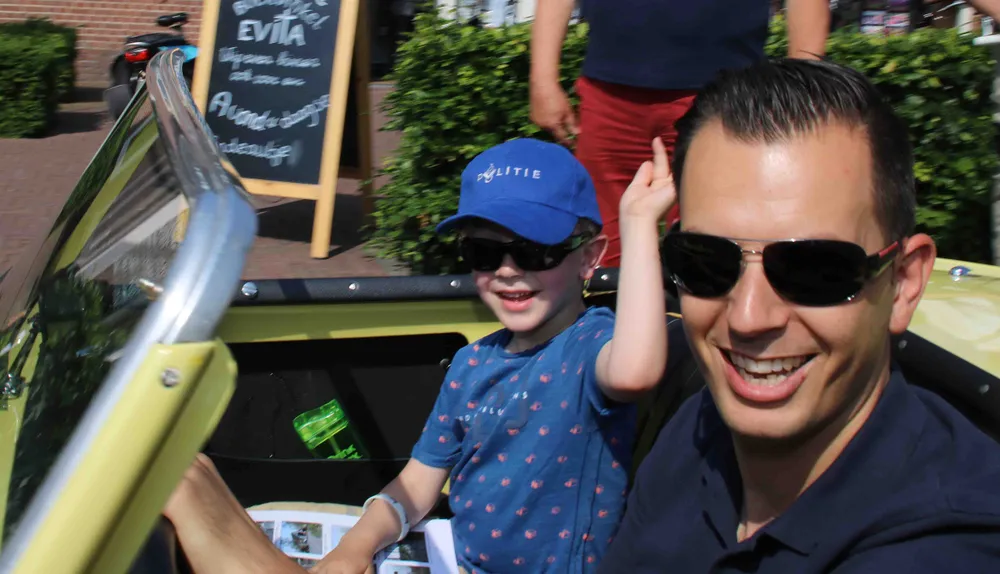 De vierjarige Stijn Callenbach was de jongste deelnemer. Als navigator wijst hij zijn vader Niels de weg vandaag. Opa Frans is trots op zijn kleinzoon. Hij heeft de hele week al geoefend op de bolletje-pijltje-route.